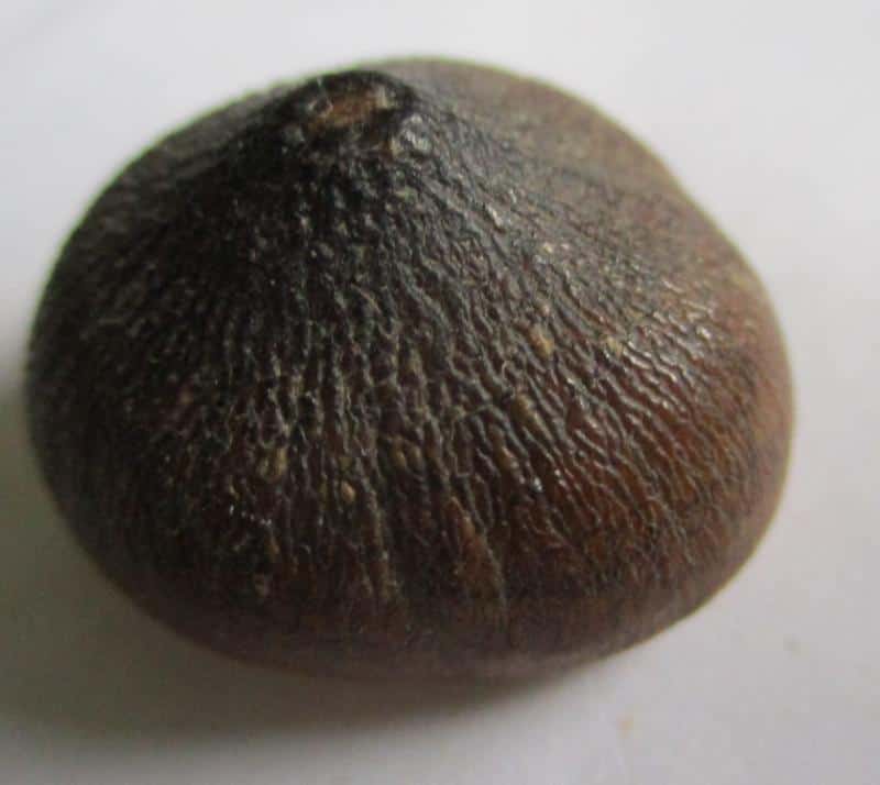 De grootte van deze fossiele mosasaurus tand is 2.5 cm.