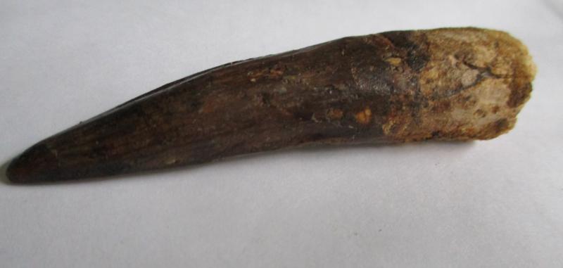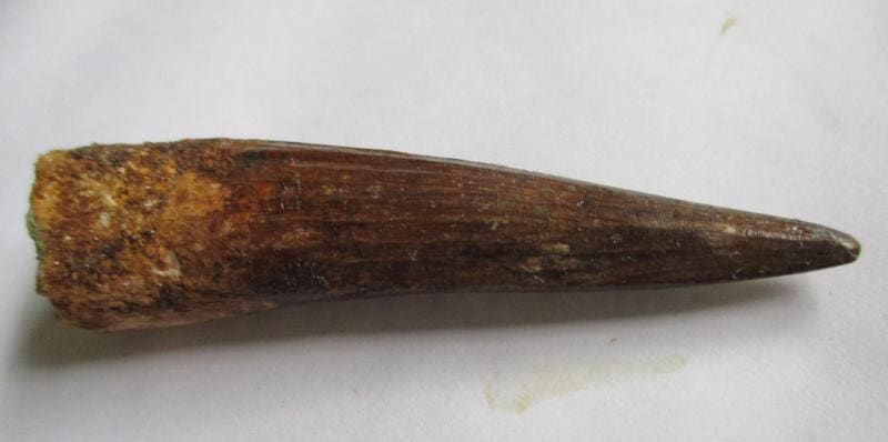 De grootte van deze Spinosaurus tand is 7.5 cm. Het fossiel is gevonden in Marokko en komt uit het Krijt (112 – 93.5 miljoen jaar oud).