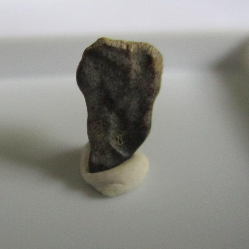 De grootte van deze Triceratops tand is 1 cm. Het fossiel is gevonden in de VS en komt uit het Laat Krijt (68 – 66 miljoen jaar oud).