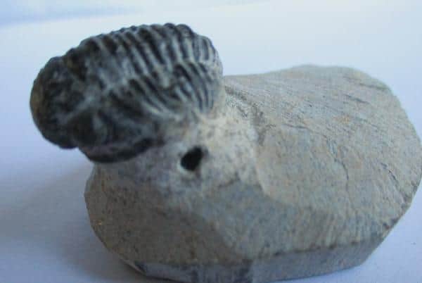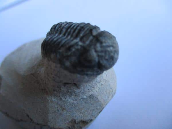 De grootte van deze trilobiet (alleen de trilobiet) is 2 bij 1,5 cm. Het fossiel is gevonden in Marokko.