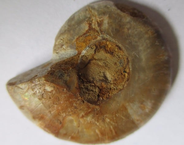De grootte van deze fossiele ammonite is 3.0 cm.