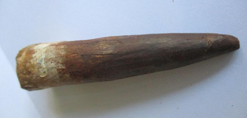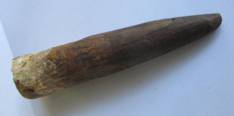 The size of this spinosaurus tooth is 9.0 cm. The fossil has been found in Morocco and is from the Cretaceous (112 –TF-486 93.5 million years old).