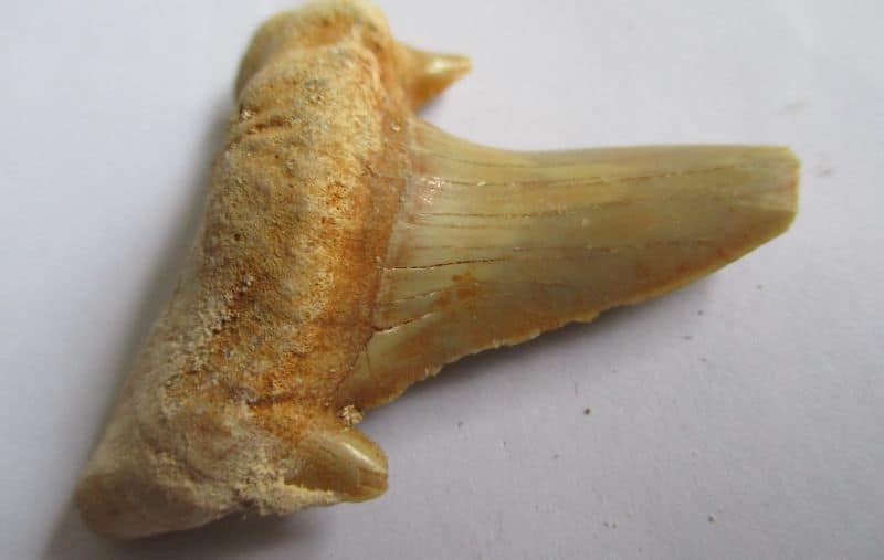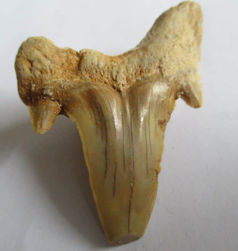 The size of this fossil sharktooth is 4.0 by 4.0 cm. The fossil has been found in Morocco.