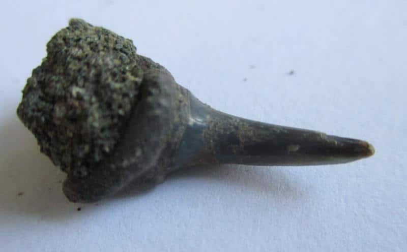 The size of this fossil shark tooth (excluding stone) is 1,2 cm. Including stone, it is 1,5 by 2 cm. The fossil has been found in Antwerp, Belgium.