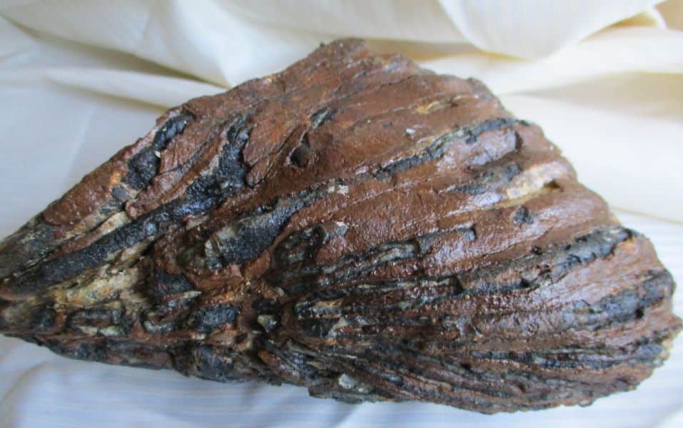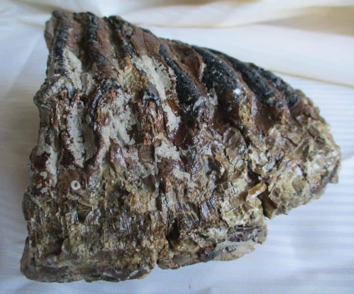 The size of this mammoth molar (fragment) is 16 by 12 by 8 cm.
