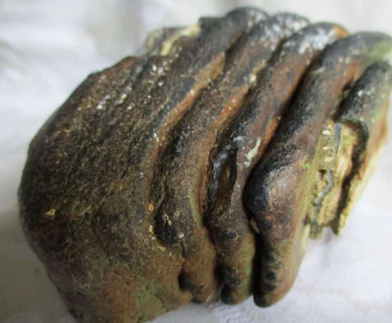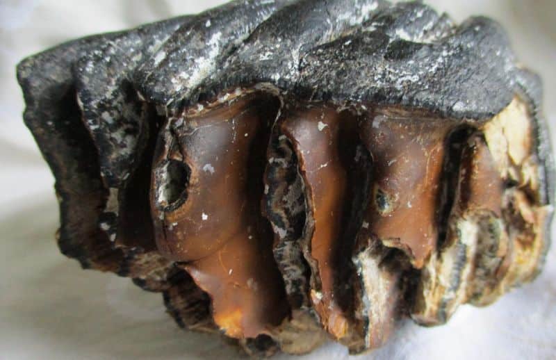 The size of this mammoth molar (fragment) is 13 by 8 by 8 cm.