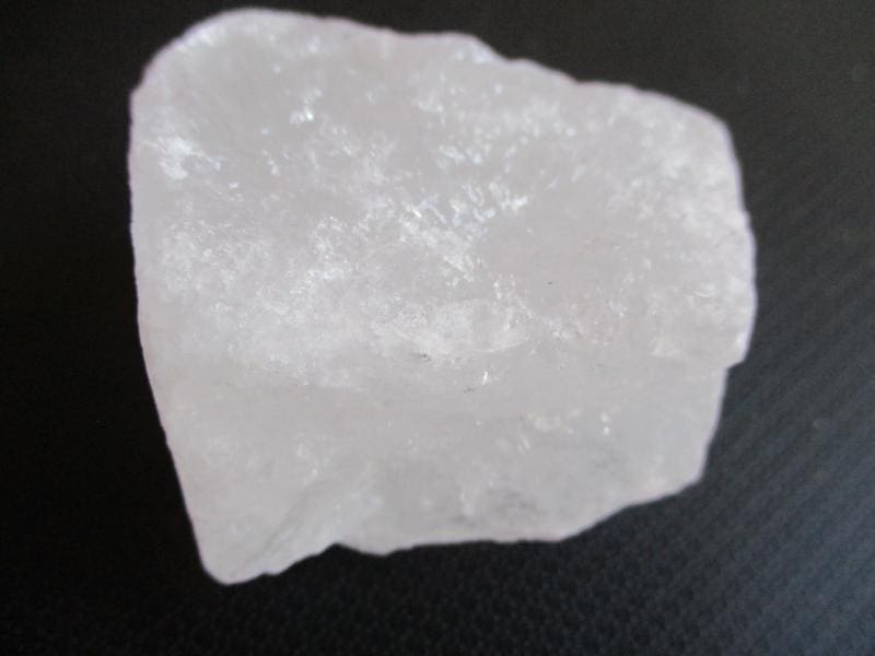 De grootte van deze zout kristal is 5 bij 4 bij 3.5 cm.